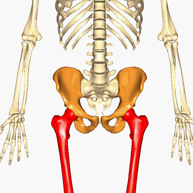 脚の骨(大腿骨)の上の突端は、まぁるくなっているので前後左右、意外に動きます。試しに誰かのフトモモを持って動かしてみましょう。
